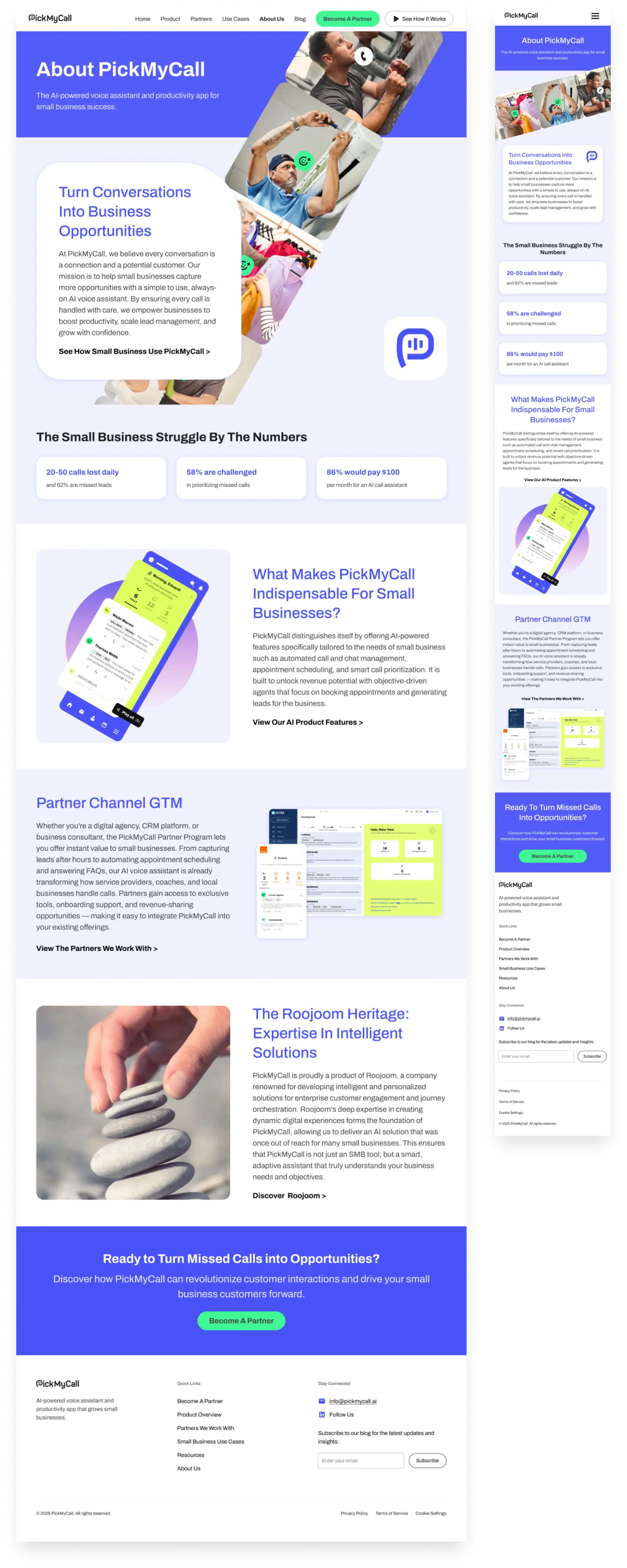 Website design for an AI voice assistant for small businesses.